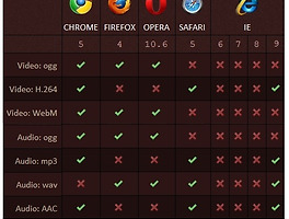 Audio 썸네일형 리스트형 html5의 새로운 태그인 Audio, Video 태그의 속성 및 이벤트 정리 Video 태그 속성 video 자바스크립트 객체의 속성들을 알아보자. 우선 태그의 속성과 공통적인 속성들이 있다. 이름 설명 src 비디오 소스의 URL height 비디오의 높이 픽셀 값 width 비디오의 넓이 픽셀 값 controls 비디오의 재생, 볼륨 등 제어기들의 표시 여부 muted 음소거 poster 로드되지 않고 있을 때 처음에 표시될 이미지의 URL loop 반복 재생 autoplay 자동 재생 mediagroup 같은 아이디로 묶어준 비디오와 오디오 스트림들 끼리 동기화 시켜주는 그룹으로 취급한다. preload "none": 사용자가 비디오를 필요로하지 않을 것이라고 명시, 미리 다운로드 하지 않음 "metadata": 사용자가 비디오를 필요로 하지 않을 것이지만, 기본 정보(크기.. html5 Audio 태그 사용시 브라우저별 지원하는 오디오코덱 정리 html5 Audio 태그 사용시 브라우저별 지원하는 오디오코덱 정리 HTML5의 가장 특징적인 기술 중 하나를 뽑으라면 바로 플러그인 없이도 웹 브라우저에서 동영상을 재생할 수 있는 것이다. 하지만, 정작 많이 사용해본 적은 없다. 지속적인 시행착오가 필요할 것 같다...적어도 나에게...ㅜㅠ 아무래도 2010년 자료다 보니 지금은 많이 변했을라나?... 크롬이 갑이네...거의 다 지원되네... 무서운 구글... 이전 1 다음